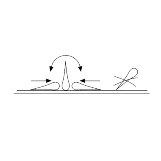 Circa 15 | Strijkriem strak spannen Scheermes vasthouden bij de schouder (het scharniergedeelte) van het scheerblad Hou het scheerblad plat (0 graden) ten opzichte van het strijkvlak Druk het scheermes licht tegen de riem Beweeg het scheermes met rustige bewegingen heen en weer over de riem Kantel het scheermes over de rug van het scheerblad in de andere richting |